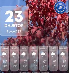 Ditën e sotme vendi ynë do të ndikohet nga kushte atmosferike të kryesisht të paqëndrueshme. Sipas Shërbimit Meteorologjik Ushtarak moti parashikohet me vranësira mesatare deri të dendura.