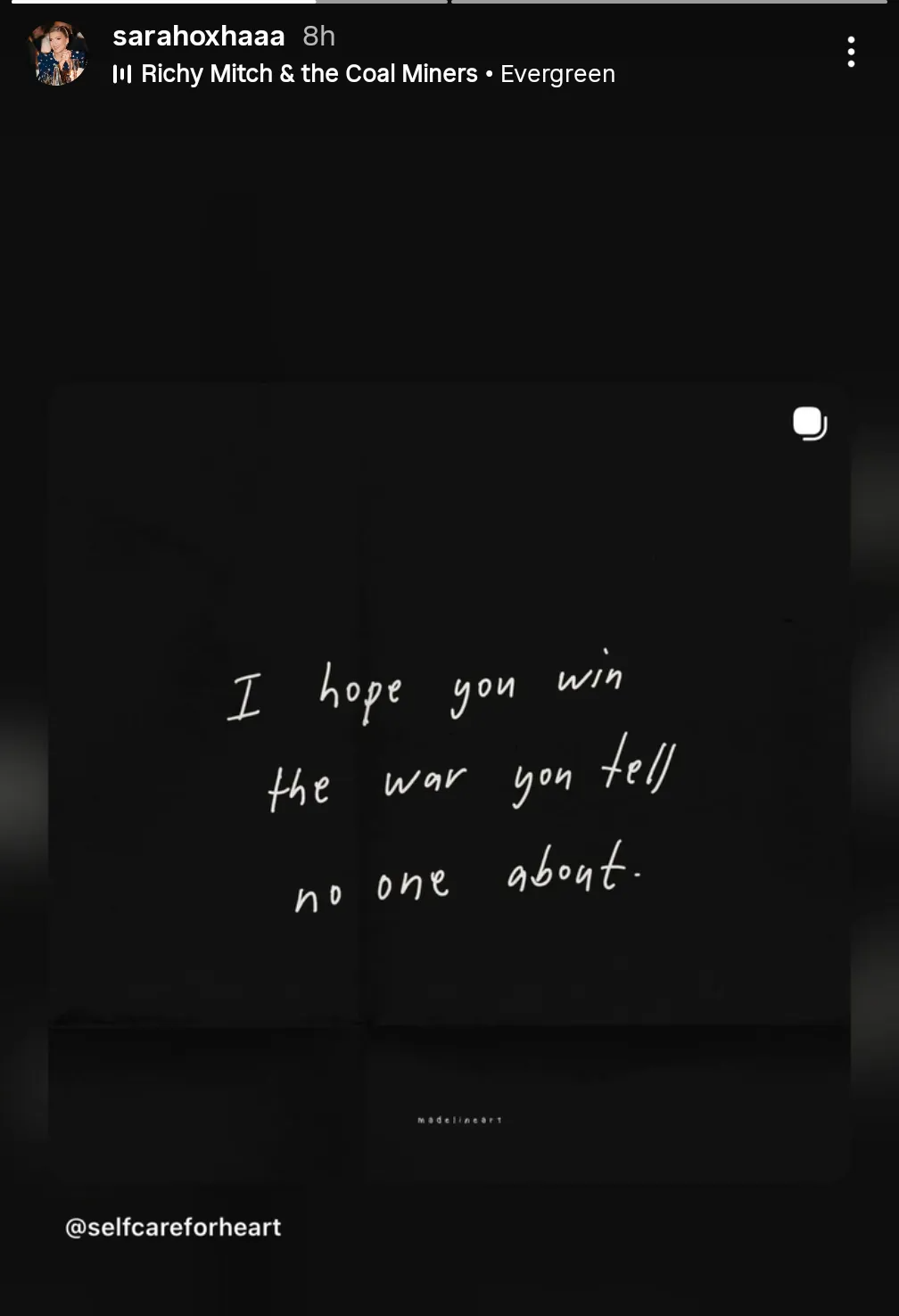 Ajo ka shpërndarë një shprehje që flet për betejat e brendshme: “Shpresoj ta fitosh Iuftën për të cilën nuk i tregon askujt”.