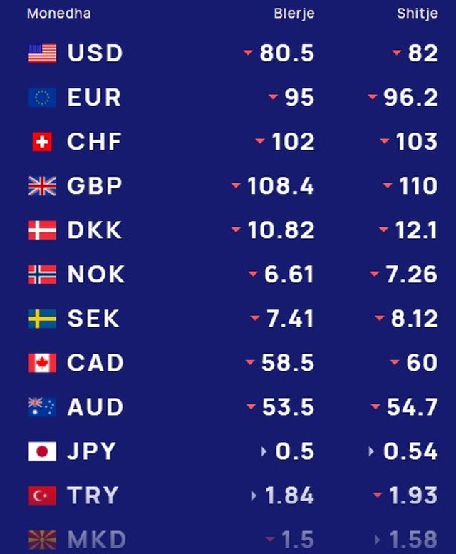 Euro blihet me 95 lekë dhe do të shitet me 96.2 lekë.