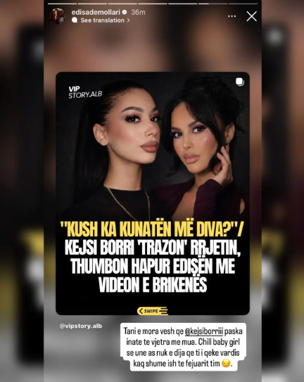 Përmes një postimi në rrjetet sociale, Edisa ka lënë të kuptohet se mes tyre ekzistojnë hatërmbetje të vjetra, duke i bërë publike për herë të parë.