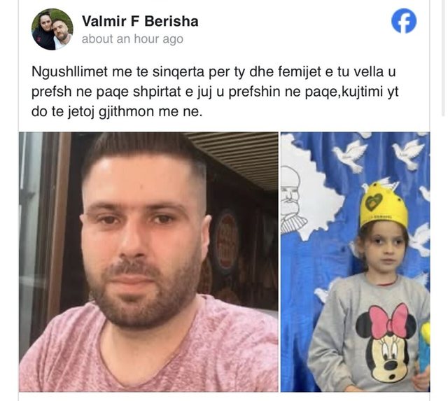 Kujtimi yt do të jetojë gjithmonë me ne”, ka shkruar ai në postimin e tij, do t’iu jemi mirenjohes nese do te na ndihmonit që të mirmbajmë faqen vetëm duke shtypur(mbi foton) që ndodhet më poshtë.Faleminderit për mirkuptimin SHQIPE