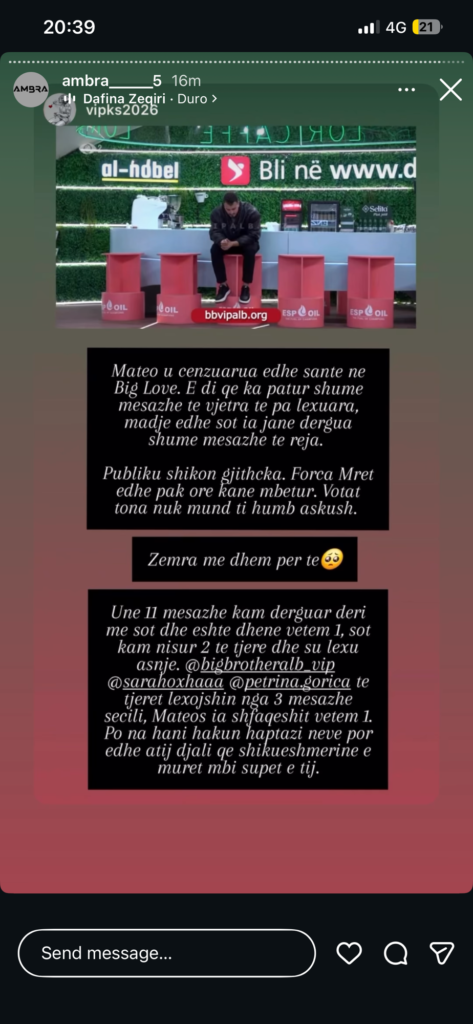 Situata rreth Mateos ka shpërthyer totalisht në rrjet, vetëm pak orë para finales së madhe. Një moment i tij i mërzitur gjatë “Big Love” ka ngritur alarmin tek fansat, të cilët kanë dalë publikisht me akuza të forta ndaj produksionit.