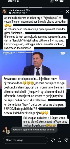 Në qendër të debatit u vendos ish-konkurrentja e “Për’puthen”, Shqipe Hysenaj, e cila nuk ka qëndruar në heshtje pas komenteve të tij.