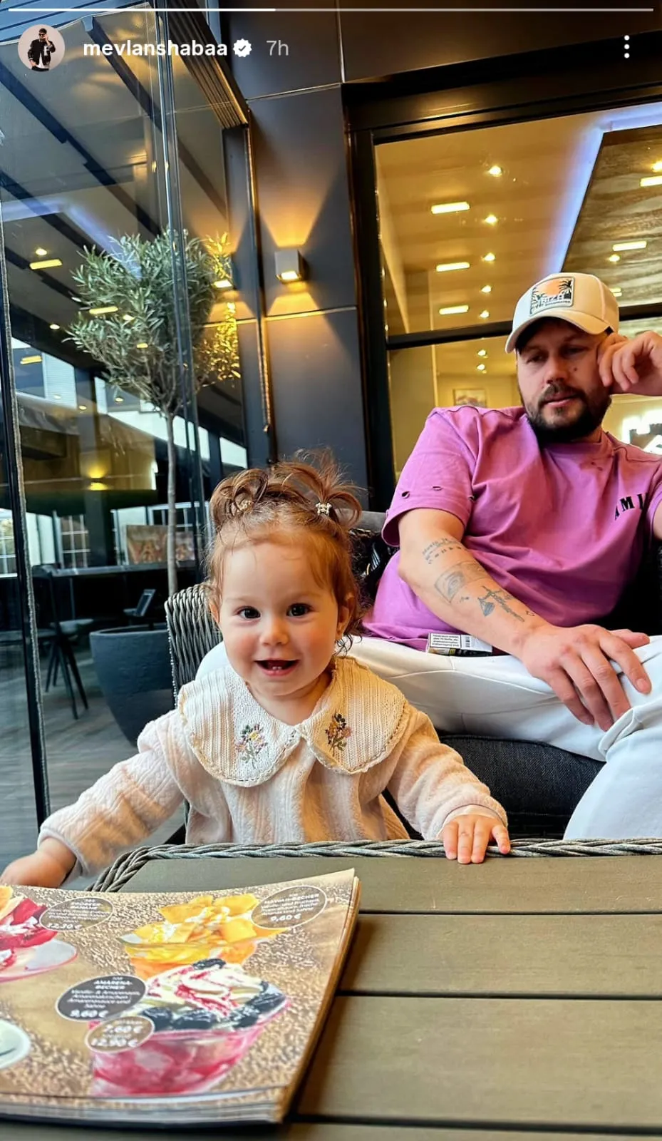 Vogëlushja Mei, e cila erdhi në jetë në vitin 2025, sot shfaqet si një vajzë e vogël, e qeshur dhe plot sharm. Në foton e publikuar nga Mevlani, dyshja duket se po shijon një moment relaksi së bashku, ndërsa buzëqeshja e Meit ka rrëmbyer menjëherë zemrat e ndjekësve.