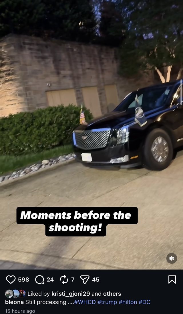 Në mes të këtij zhvillimi dramatik, Bleona ndau me ndjekësit e saj në Instagram një moment nga mbrëmja, ku shfaqet elegante në tapetin e kuq. Krahas fotos, ajo shkroi: “Pushtet, politikë dhe rrobaqepësi precize. Darka e mbrëmshme e Korrespondentëve të Shtëpisë së Bardhë (tani do të riplanifikohet)”, duke lënë të kuptohet edhe për situatën e papritur që përfshiu eventin.